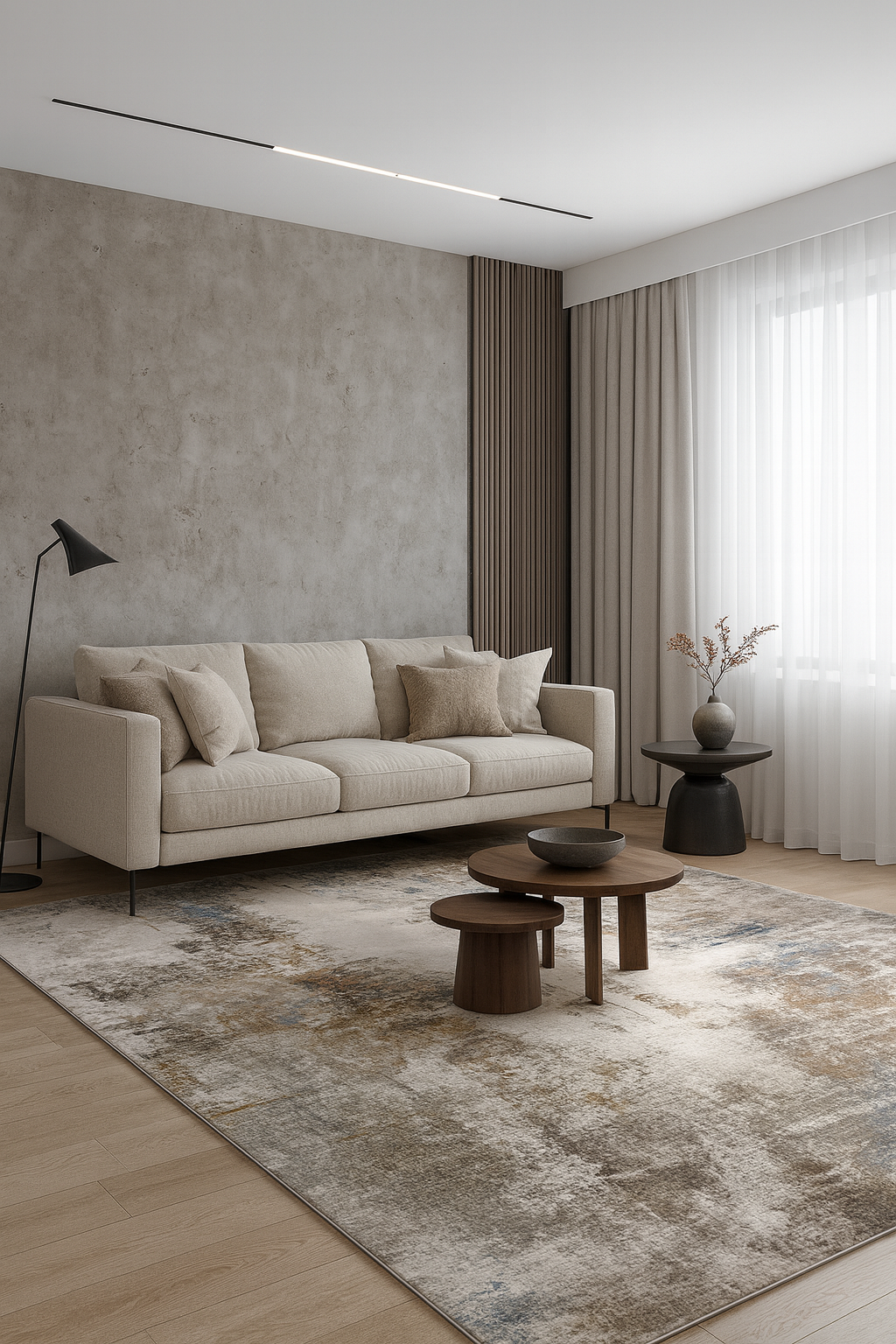Bring warmth and character to your space with the Milano Ember Coast carpet, featuring an abstract design in harmonious beige, brick, and blue tones. This stylish rug combines earthy colors with cool highlights, creating a captivating centerpiece perfect for living rooms, bedrooms, or creative areas. Made from luxurious bamboo silk, this thin-profile carpet balances contemporary aesthetics with durable comfort.